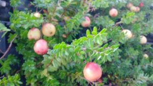 近所のレストランの入り口に並んでいる植木鉢に、クランベリーの実が、季節が進み少し色がつき始めました。 秋が深まり熟すと、実が真っ赤になって、収穫の時期を迎えます。クランベリーは、ツツジ科の常緑低木で、山地では地表を這う様 […]