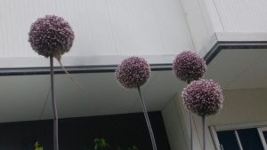 2メートル弱の長い茎の先で、ソフトボール位の球形の物体が風に揺らいでいます。 一頃は花の集合体にそれぞれ紫色がかった小花が咲いて全体的にもう少し綺麗な色だったのですが、日数が過ぎて少し退色して仕舞いました。 ユリ科の植物 […]