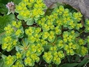 | 色彩が素晴らしい!珍しい花の形も魅力 春の明るい緑の中でもこの草の花周辺の葉の色は群を抜いて鮮やかなのでよく目立つ。この茎上部が平らで明るい様子を、昔の燈台(室内を照らす照明器具)に見立てたのが名の由来。 |
