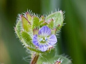 別名を「ツタバイヌノフグリ」という。オオイヌノフグリなどより発芽の時期が遅く、花期になっても子葉が残っているのが特徴。コゴメイヌノフグリとタチイヌノフグリの中間のような形態を示し、毛が多い。しかし、コゴメイヌノフグリとは果実に毛がないことから区別できる。 |