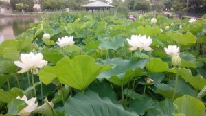 会場中心の大きな池の一角に蓮が植わっている場所が有ります。