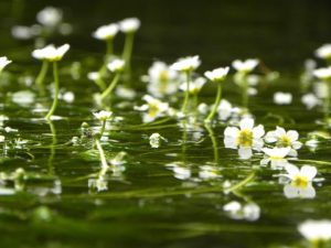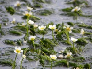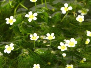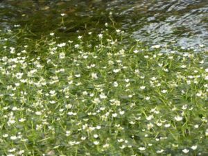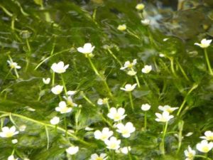 「梅花藻」は、キンポウゲ科の淡水植物で、生育環境が冷水の清流の水底に限られ、水流のある場所でしか育ちません。