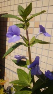 唇形の花で、2枚の花弁が上下に開き、中心部に少し白い部分がある花姿が、ブルーキャッツアイを、連想するからとの理由ですが、いくら眺めていても、僕にはキャッツアイは、見えて来ません。