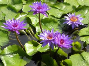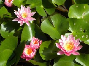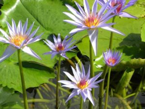 4,→「デレクターG.T.ムーア」花が水面から10cm位立ちあがって咲くのが特徴。昼咲き。