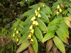 一方で「キイジョウロウホトトギス」は、「紀伊半島南部の限られた山間部のごく一部だけ」に自生する植物で、絶滅危惧種に指定されている、ごく希少な、ユリ科多年草の植物です。 人が足を踏み入れられない、険しい崖から垂れ下がる黄色い釣り鐘状の花を、鈴なりに咲かせる姿は、大変美しく優雅なものです。