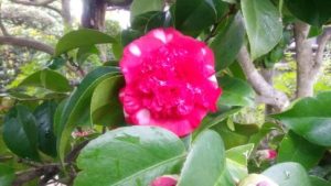 椿は日本を代表する花木で、江戸時代に栽培が大流行となり様々な品種改良が行われました。 自宅近辺の旧亀岡街道沿いにある浄土宗のお寺の境内には、珍しい花をつけた椿が植わっています。