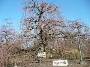 この庭園梅林は「しだれ梅」の名木が揃い、しだれ梅を伝統的な技術で管理する為の技術継承を目的ととした「研究栽培農園」が位置づけの珍しい梅林です。植わっているのは、代表品種の「呉服枝垂―くれはしだれ」を主体とする八重咲種を中心に、30品種 樹齢100年以上の古木も多く、約200株が栽培管理されています。