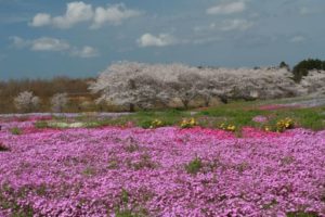 千葉の「さとにわ公園」:桜と芝桜のコラボ