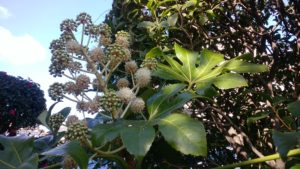ハナキリンの本来の花の時期は夏場をメインとして晩秋まで、このところの寒気に当たって黄緑色だった葉は変色し、花も生気を無くしつつあります。 花弁の様に見えるものは「苞―ほう」と呼ばれるもの、葉っぱが色づいたもので中心部にみえる小さな部分に雄しべ・雌しべがあります。 この後は葉を落として休眠期に入り、暖かくなるとまた芽吹いてきます。