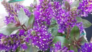 ブラキカムは、オセアニア地域が原産地のキク科植物、オーストラリアで品種改良されたもので、水はけと日光に留意すれば栽培は容易、花の時期が長く、夏の暑さや寒さにも抵抗力があり、マイナス10℃位までならば大丈夫との事です。中心部の黄色い部分は筒状花、青い花弁は舌状花の二重構造に成っています。
