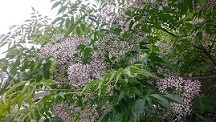 最寄り駅迄の途中にある栴檀(せんだん)の大木が一杯に花をつけていましたが、特段の香は漂っていません。