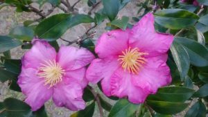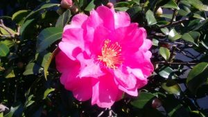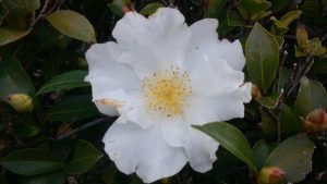 「山茶花ーさざんか」と言う名前は、中国の椿の呼び名の「さんさか」から変化したものですが、古くから庭木や生け垣として利用され、日本原産の常緑低木で、四国 九州の暖地の他 沖縄にその野生種は残っていて、それは「白い花」を咲かせ、台湾と中国の海岸部にも分布するそうです。